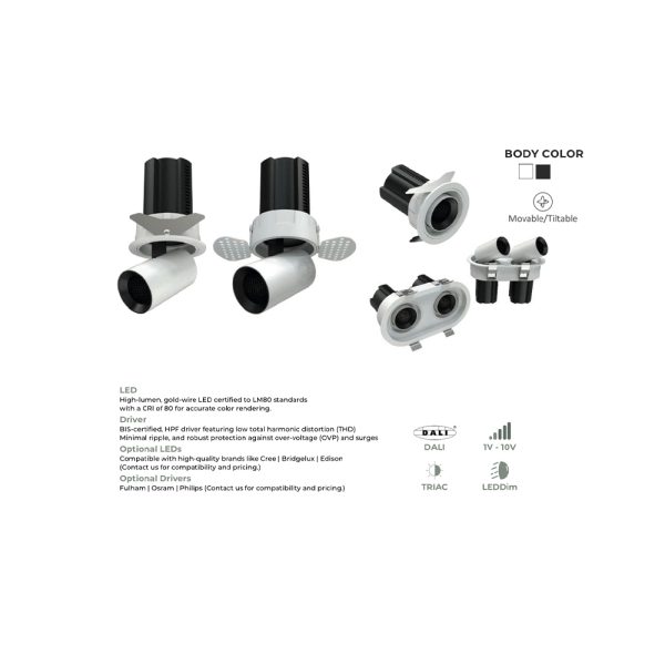 LEARC 2X7 watt 360 degree rotatable, tiltable, pull out type LED down light with CREE COB and top branded LED driver.