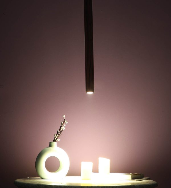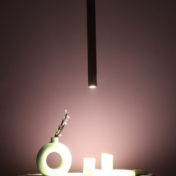 Brown premium wood finish, sleek, modern, 12 watt LED hanging light having top branded LED and driver warm white (yellow) light output The suspension can be adjusted at time of installation to the desired height. Can be made available in a cluster of multiple quantities with round, square or rectangular base as per requirement . Application includes both residential and commercial premises wherever it matches with your interiors. Can be customized as per requirement in terms of finish, wattage, height, diameter.