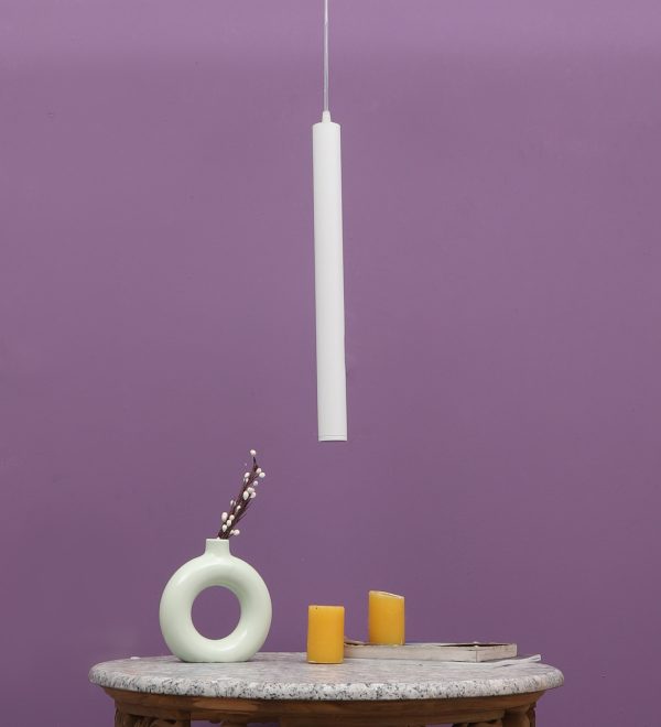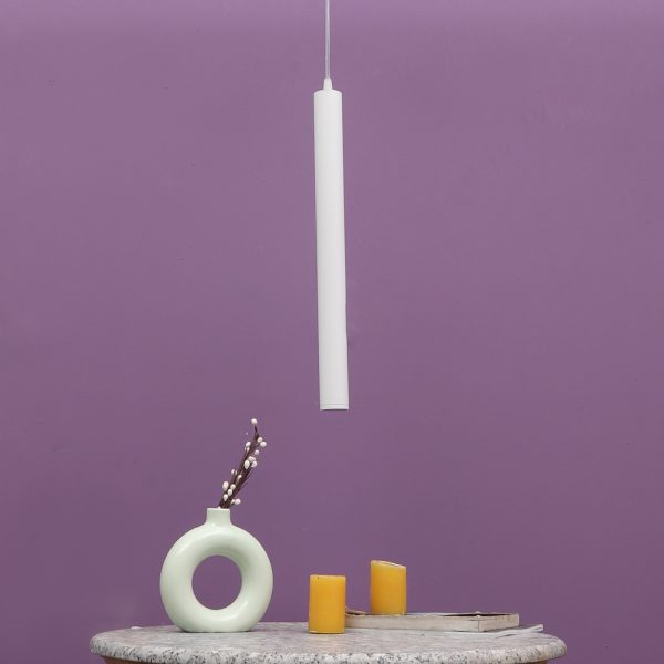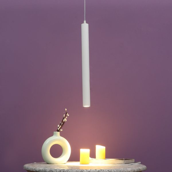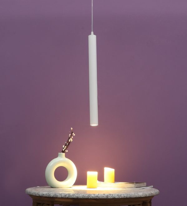 White finish, sleek, modern, 12 watt LED hanging light having top branded LED and driver warm white (yellow) light output The suspension can be adjusted at time of installation to the desired height. Can be made available in a cluster of multiple quantities with round, square or rectangular base as per requirement . Application includes both residential and commercial premises wherever it matches with your interiors. Can be customized as per requirement in terms of finish, wattage, height, diameter.
