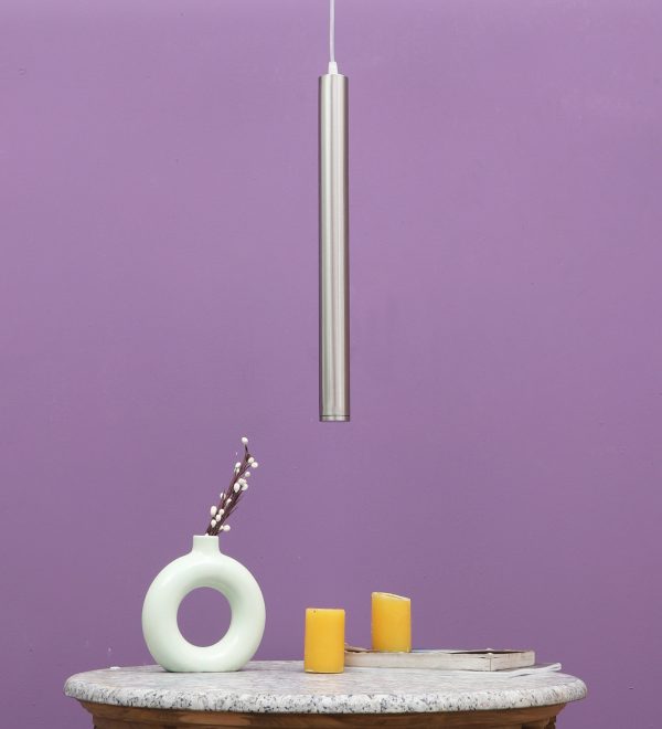 Satin Nickel, sleek, modern, 12 watt LED hanging light having top branded LED and driver warm white (yellow) light output The suspension can be adjusted at time of installation to the desired height. Can be made available in a cluster of multiple quantities with round, square or rectangular base as per requirement . Application includes both residential and commercial premises wherever it matches with your interiors. Can be customized as per requirement in terms of finish, wattage, height, diameter.