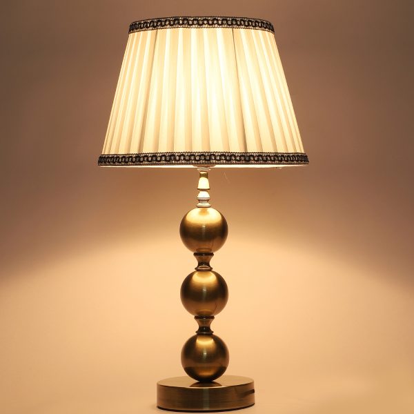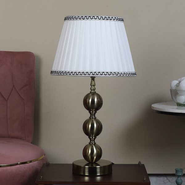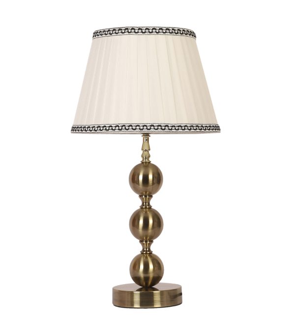 LEARC antique brass finish table lamp with cream textured shade having golden border TL5015-B