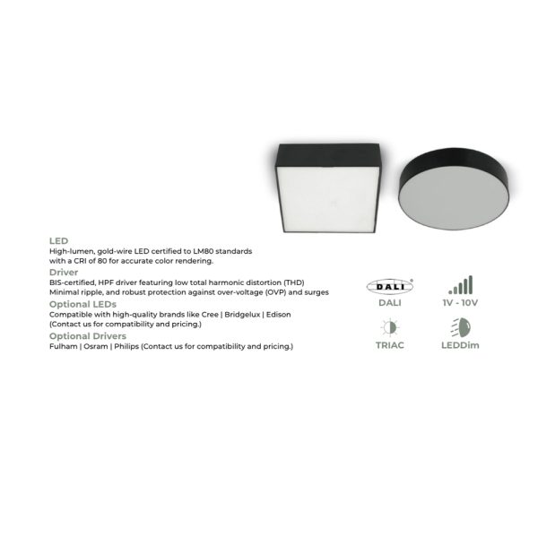 LEARC black finish 24 watt round LED Ceiling Light Surface.