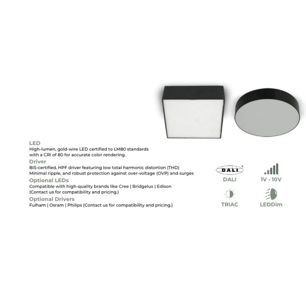 LEARC black finish 40 watt square LED Ceiling Light Surface.