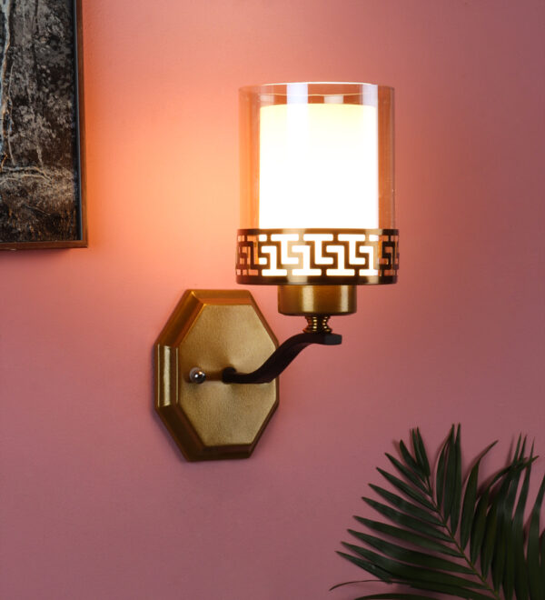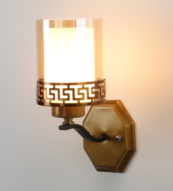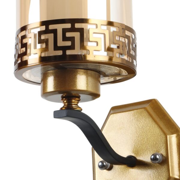 Antique gold finish single wall light having round, cylindrical two layered champaign coloured glass. It is maintenance free, easy to remove glass and wash them, comes with an E27 holder, only the change of lamp is required, which is available locally everywhere. Application includes both residential and commercial premises wherever it matches with your interiors. Matching double wall light code – WL2710. Can be customized as per requirement in case of bulk quantity, LAMP NOT INCLUDED.
