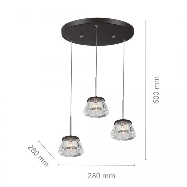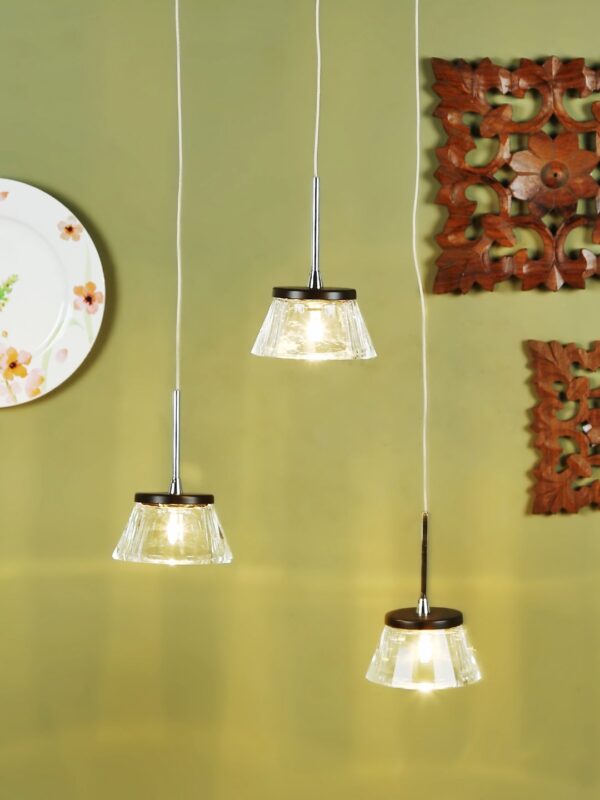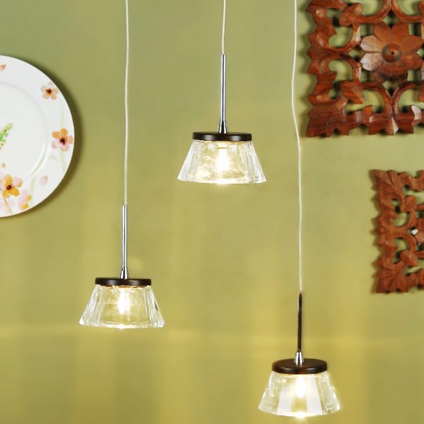 Ultra modern, premium, mild steel silver (chrome – wood) finish, heavy crystal three glass single hanging light. The suspension can be adjusted at time of installation to the desired height. Comes with an G4 holder and inbuilt transformer. Similar hanging variants with different number of lights – HL4047-1. Matching variants in ceiling light – CL438, CL443, CH377, CH378. LAMP INCLUDED.