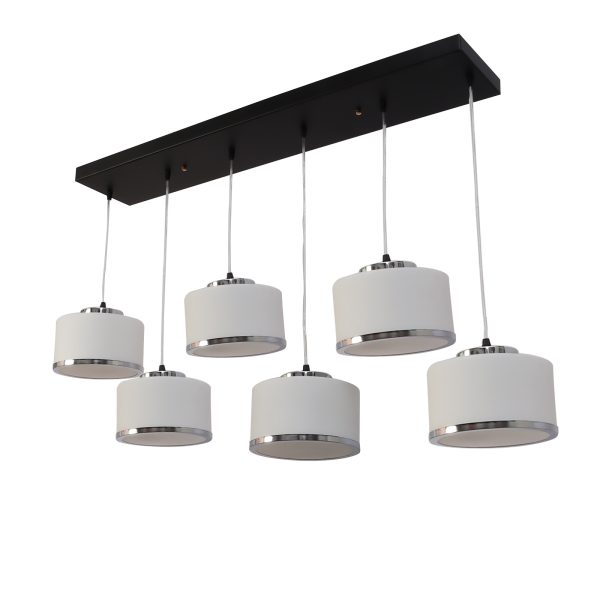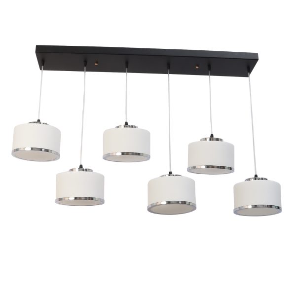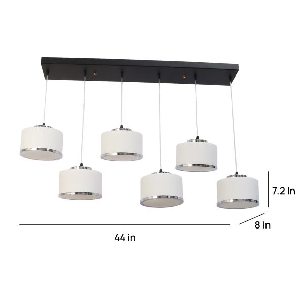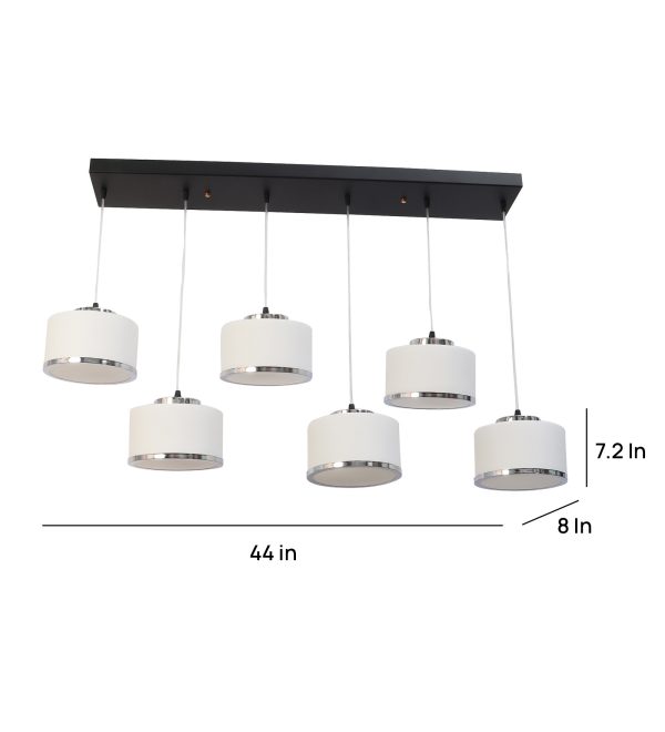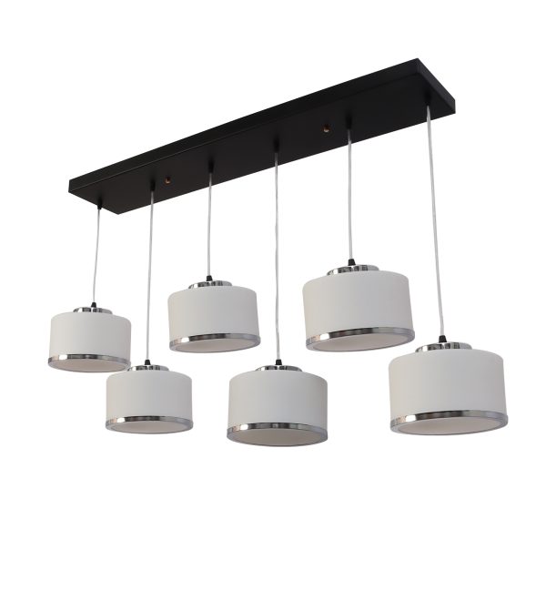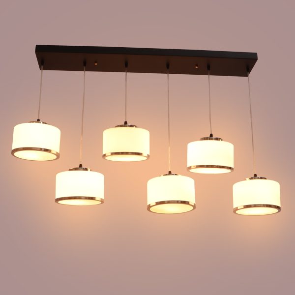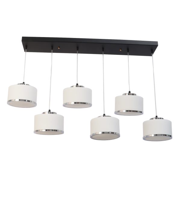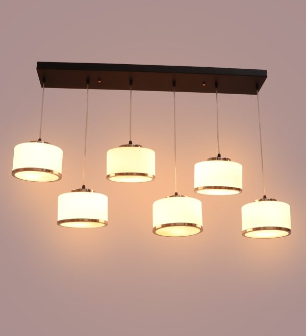 Rectangular hanging light having six lamps. Can be customised as per requirement in terms height, number of lamps. LAMPS NOT INCLUDED.