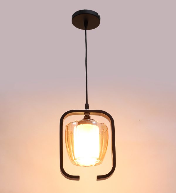 Dark brown (wood) finish, campaign glass single hanging light, made of wood, mild steel and glass. The suspension can be adjusted at time of installation to the desired height. Can be customized as per requirement. LAMP NOT INCLUDED.