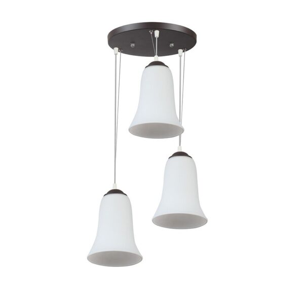 Dark brown (wood) finish, cluster hanging light having three lamps made of mild steel , glass and wood. The suspension can be adjusted at time of installation to the desired height. It is maintenance free, easy to remove glass and wash them, comes with an E27 holder, only the change of lamp is required, which is available locally everywhere. Application includes both residential and commercial premises wherever it matches with your interiors. Also available in single lamp option with code HL4070-1. Antique gold finish code HL4071-1, HL4071-3. Silver (dull satin) finish code – HL4072-1, HL4072-3. Can be customized as per requirement in case of bulk quantities. Lamp not included.