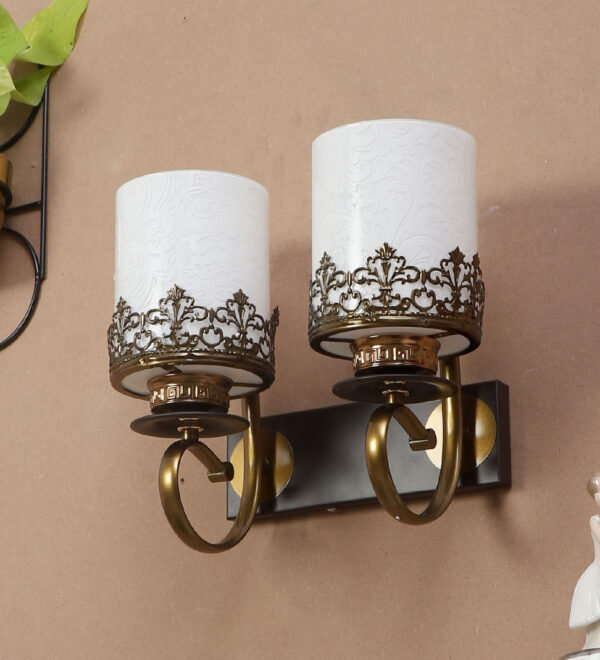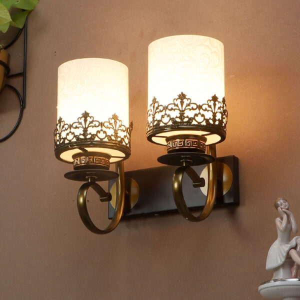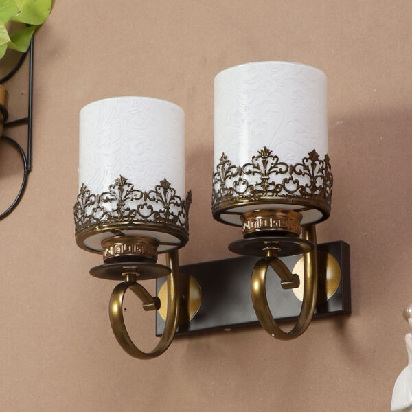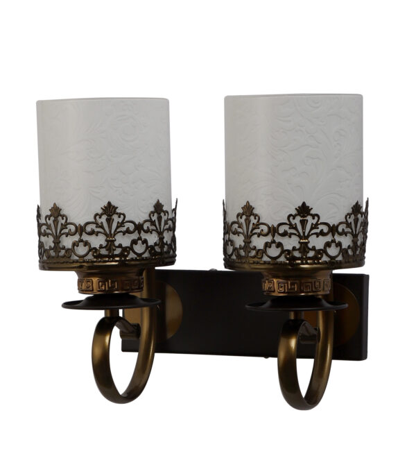 Antique and dark brown finish double wall light. Can be customized as per requirement. LAMP NOT INCLUDED.
