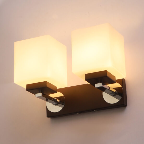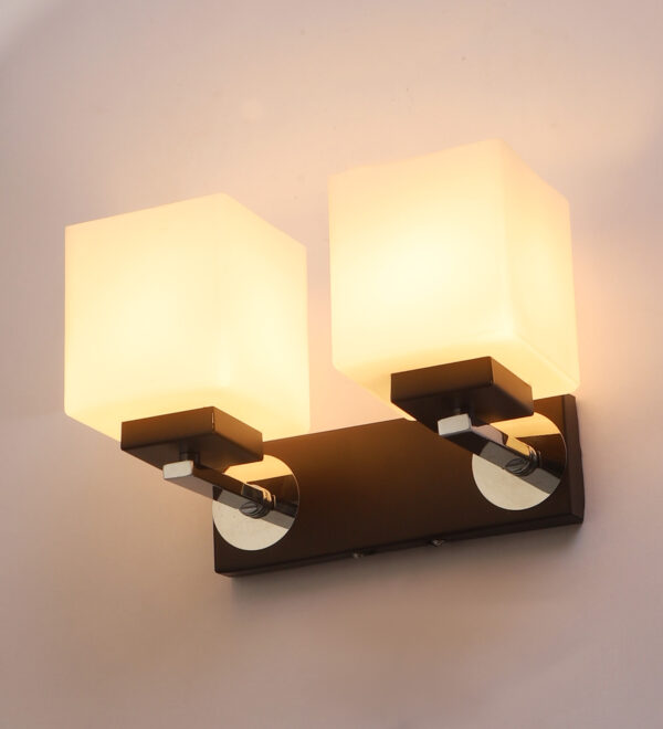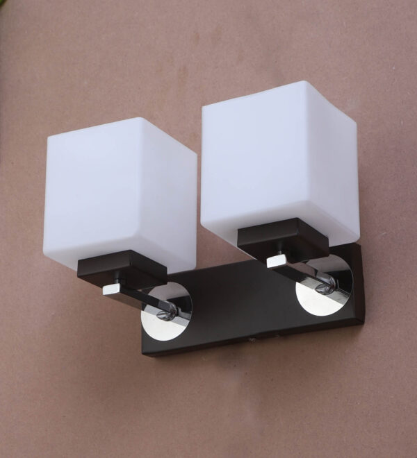Dark brown and chrome finish double wall light. Can be customized as per requirement. LAMP NOT INCLUDED.