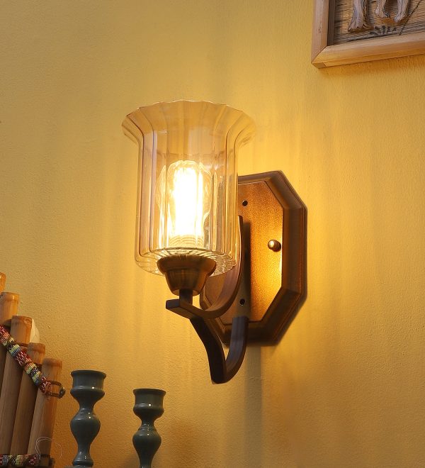 LEARC Designer Lighting Contemporary Glass Metal Wood Wall Light WL3250