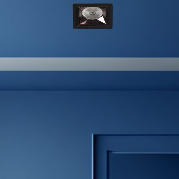 Aluminium die cast powder coated black finish 5 watt anti LED Linear down light with Bridgelux COB and Fulham or equivalent LED driver. Used in ultra modern spaces.