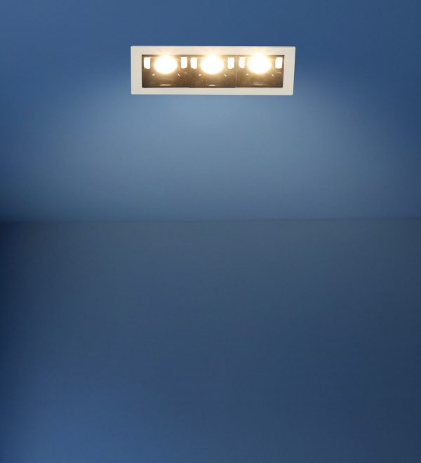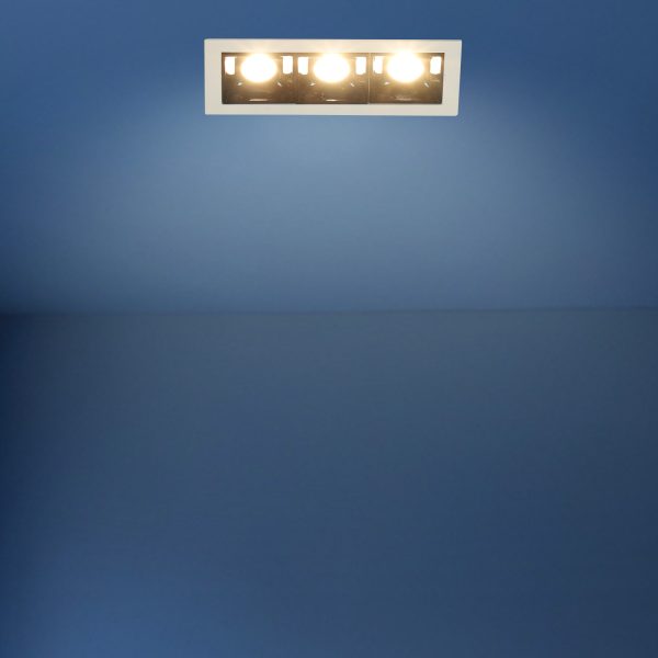 Aluminium die cast powder coated white finish 3 x 2 watt LED Linear down light with Bridgelux COB and Philips LED driver. Used in ultra modern spaces.