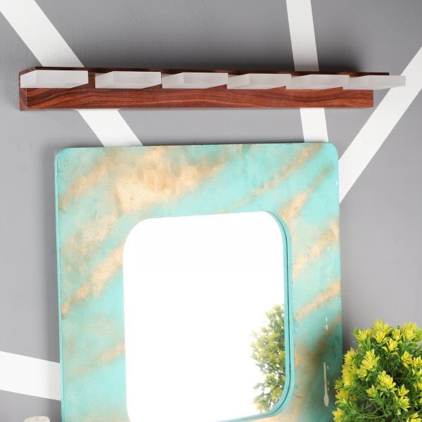 Exclusive dark brown (wood finish) LED mirror light using high quality LED and driver with high success rate having less than 0.5% replacement with warm white (yellow) light output. It is usually placed over the mirror. Can also be used as a picture light or a wall light. Its premium quality wood finish makes it one of the best selling product in our catalogue. It is also available in small size with code ML358-3. It can be made in silver, antique, copper, white, and black finish with two, four and five lamp units also, in case of bulk requirement.