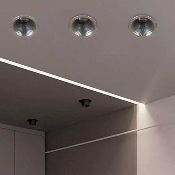 LEARC Premium Titanium finish 15 watt dimmable and tunable (RF, BT, MESH, WIFI) LED downlight.