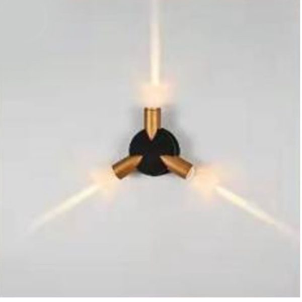 OUTDOOR WALL LIGHT BLACK GOLD THREE WAY 3 WATT 3K.