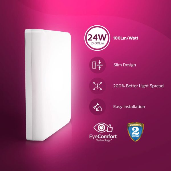 PHILIPS FULL GLOW SQUARE 24 WATT RIMLESS SURFACE CEILING LIGHT COOL DAY LIGHT PH1440