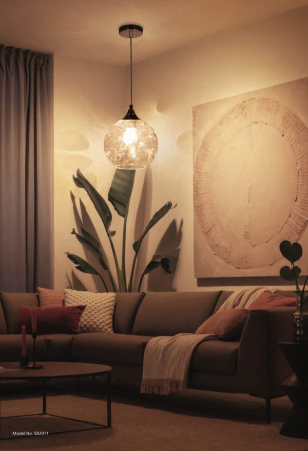 and pendants. Crafted in superior borosilicate glass and chrome, these pendants emit