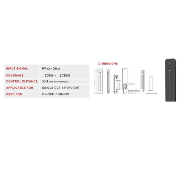 Remote for 1 channel single CCT strip light used for on off and dimming operation MEM219