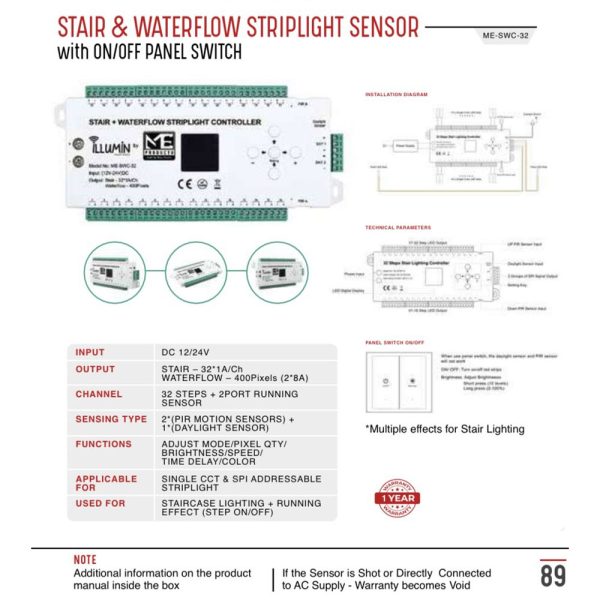 STAIR & WATERFLOW STRIPLIGHT SENSOR with ON/OFF PANEL SWITCH.