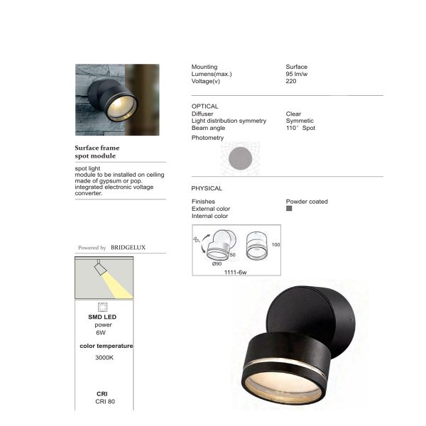 SUPERSCAPE 6 watt round adjustible angle outdoor wall and ceiling light with Bridgelux Led and high quality LED driver k1253