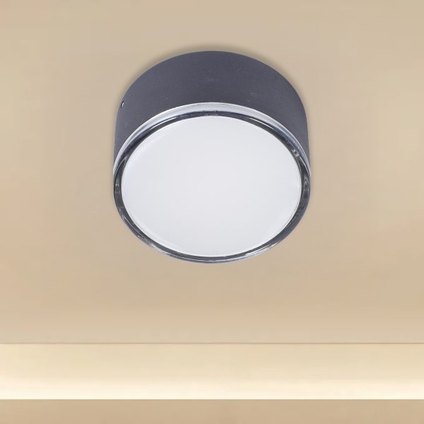 SUPERSCAPE aluminium 8 watt black finish outdoor ceiling surface round with top branded LED and IP65 driver 3K.