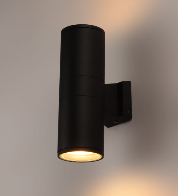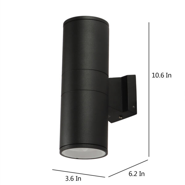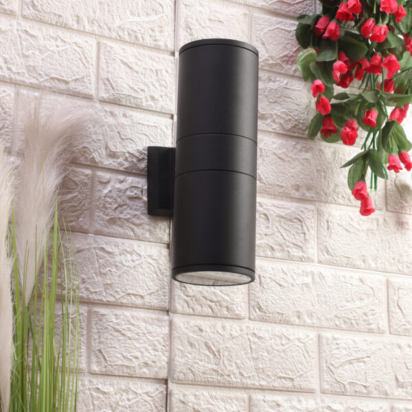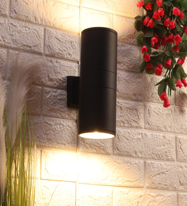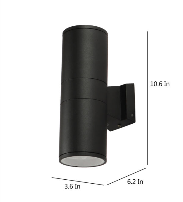 Solid, heavy, aluminium die cast, one of top selling export quality cylindrical wall light providing up and down lighting is available in black finish. It is maintenance free, only the change of lamp is required, which is available locally everywhere.It is used with PAR20 LED lamp to give a very bright output.Excellent for installing in many locations such as front doors, garden walls, sheds and garages, parking. Can be dimmed if used with a dimmable lamp. Rated at IP54 it is intended for exterior use it can also be installed inside if you wish. Lamp not included.