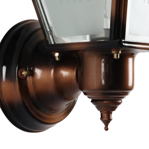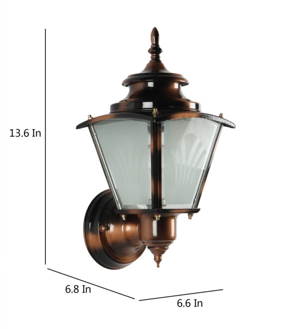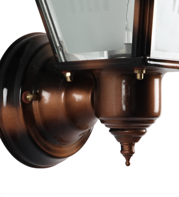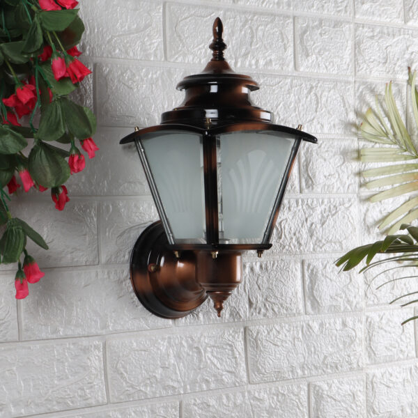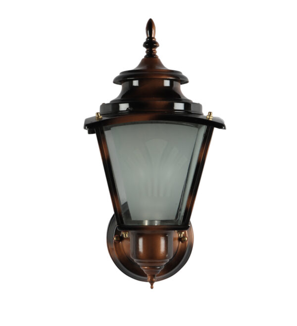 Vertical, aluminium sheet, export quality traditional outdoor wall light in bronze finish. It is maintenance free, comes with an B22 holder, only the change of lamp is required, which is available locally everywhere You can of course swap out the bulb for one that is dimmable, has a higher light output or a different color temperature. IP54 rated providing protection from sprayed water in any direction and making this light perfect for use outdoors.Application areas include Stair case walls, passage to staircase, terrace walls, terrace gardens, outdoor walls, boundary walls, open parking, stilt parking, basement parking, balcony , can also be installed inside, also suits theme restaurants and bars.Matching Gate Light – GL4790. Matching Pendant – HL4090.