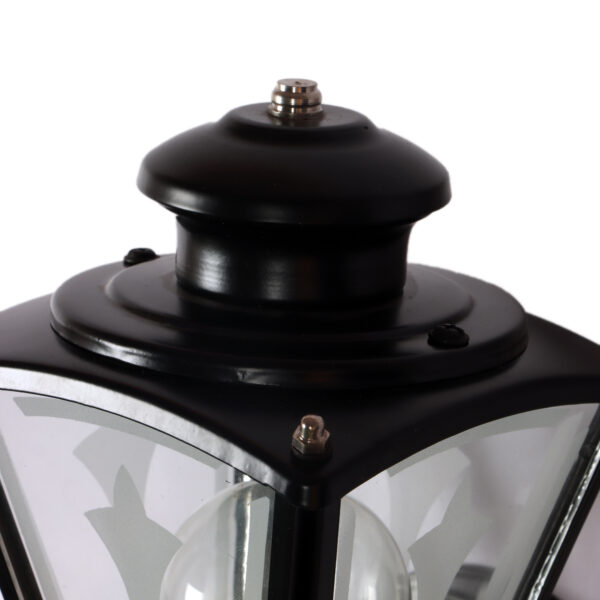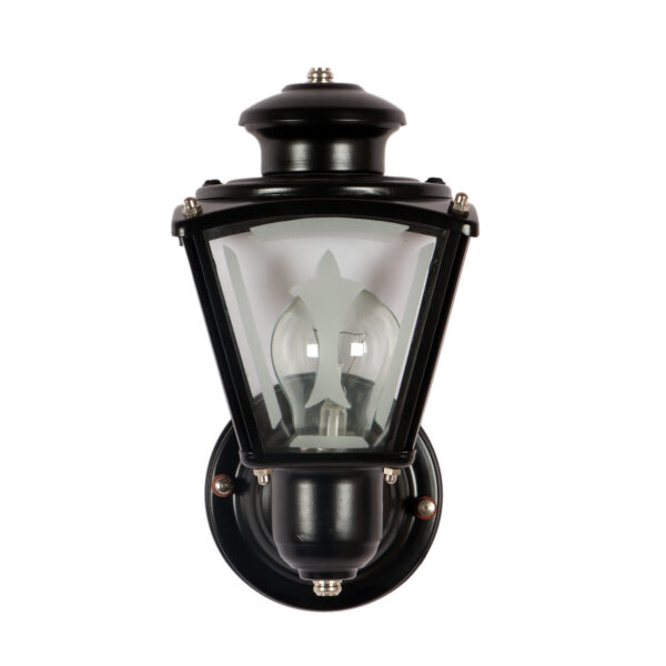 Vertical, aluminium sheet, export quality traditional outdoor wall light in black finish with design glass. It is maintenance free, comes with an B22 holder, only the change of lamp is required, which is available locally everywhere You can of course swap out the bulb for one that is dimmable, has a higher light output or a different color temperature. IP54 rated providing protection from sprayed water in any direction and making this light perfect for use outdoors.Application areas include Stair case walls, passage to staircase, terrace walls, terrace gardens, outdoor walls, boundary walls, open parking, stilt parking, basement parking, balcony , can also be installed inside, also suits theme restaurants and bars.
