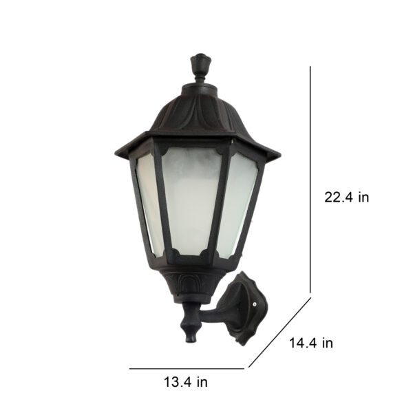 Solid, heavy, aluminium die cast, traditional outdoor wall light is available in black finish. It is maintenance free, comes with an B22 holder, only the change of lamp is required, which is available locally everywhere You can of course swap out the bulb for one that is dimmable, has a higher light output or a different color temperature. IP54 rated providing protection from sprayed water in any direction and making this light perfect for use outdoors. Application areas include Stair case walls, passage to staircase, terrace walls, terrace gardens outdoor walls, boundary walls, open parking, stilt parking, basement parking, balcony, theme restaurants and bars, farm houses and party venue. IP54 rated providing protection from sprayed water in any direction and making this light perfect for use outdoors, can also be installed indoors it goes with the color theme.