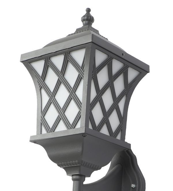 Solid, heavy, aluminium die cast, traditional outdoor wall light is available in grey finish. It is maintenance free, comes with an E27 holder, only the change of lamp is required, which is available locally everywhere You can of course swap out the bulb for one that is dimmable, has a higher light output or a different color temperature. Application areas include Stair case walls, passage to staircase, terrace walls, terrace gardens outdoor walls, boundary walls, open parking, stilt parking, basement parking, balcony, theme restaurants and bars, farm houses and party venue. Can also be installed indoors it goes with the color theme.LAMPS NOT INCLUDED.