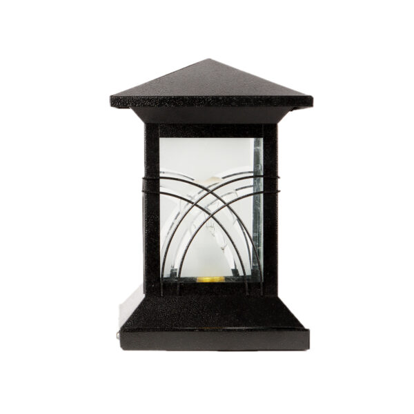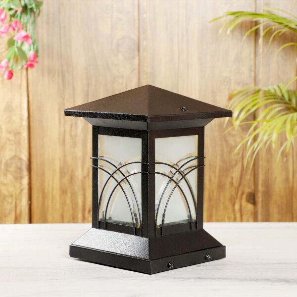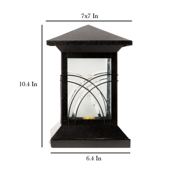 Traditional, mild steel economic gate pillar post light in black finish. It is maintenance free, comes with an B22 holder, only the change of lamp is required, which is available locally everywhere You can of course swap out the bulb for one that is dimmable, has a higher light output or a different color temperature. IP 54 rated, providing protection from sprayed water in any direction and making this light perfect for use outdoors. Application areas include building entrance, on top of terrace walls, terrace gardens, boundary walls, open parking, stilt parking. Available in two sizes. Big size gate light code – GL4804-M.