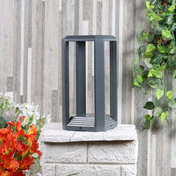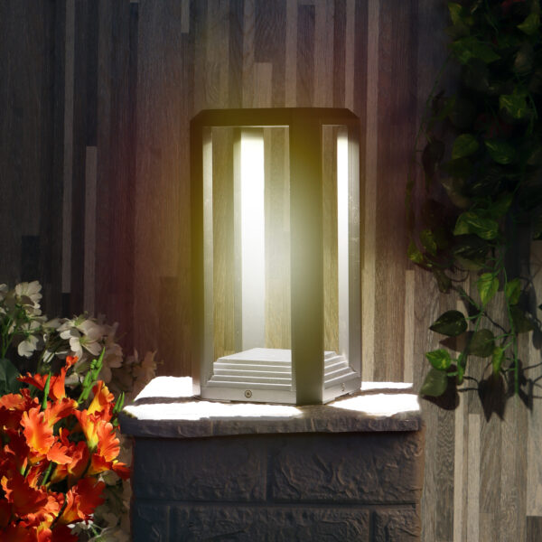 Modern sleek aluminium die cast gate pillar post light in grey finish. using high quality LED and driver with high success rate having less than 0.5% replacement. IP 54 rated, providing protection from sprayed water in any direction and making this light perfect for use outdoors. Application areas include building entrance, on top of terrace walls, terrace gardens, boundary walls, open parking, stilt parking.