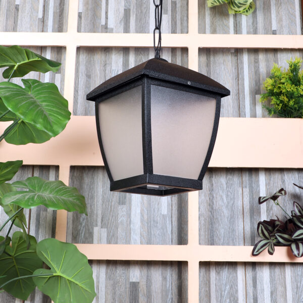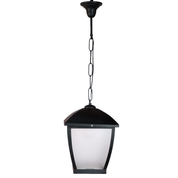 Modern, mild steel outdoor hanging light in black finish. It is maintenance free, comes with an B22 holder, only the change of lamp is required, which is available locally everywhere..Application areas include building entrance passage, porch, terrace gardens, theme restaurants and bars, farm house, party venues, gazebo. Can be installed indoors also it it matches with the interiors. LAMP NOT INCLUDED.
