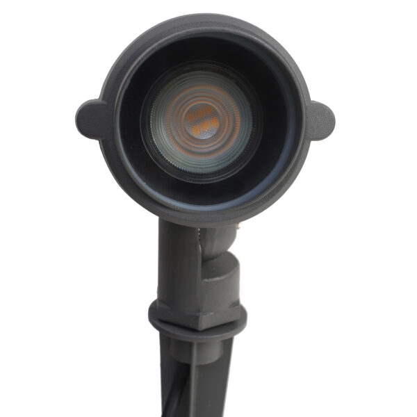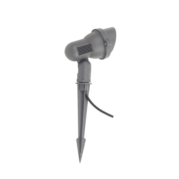 Aluminium die cast outdoor spike light It is maintenance free. It uses GU10 LED lamp, which is available locally everywhere in different wattage and colour temperatures. Designed to withstand the harsh conditions of the great outdoors while remaining stylish and functional. Spike lights provide the ultimate flexibility in lighting your garden as they can easily be re positioned when required to illuminate different shrubs and trees throughout the seasons. The head is adjustable allowing you to illuminate any area you desire. Easy for use in gardens small or large. IP 54 rated, protection against splashed water. LAMP NOT INCLUDED.