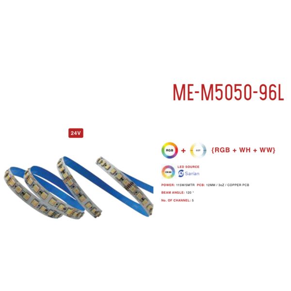 Ultra Premium 5050 24V 120 LED per meter strip 144 watt 12 mm RGB + warm white 5 meter roll without driver MEM210