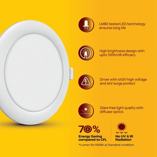 Wipro Garnet Alpha 12 watt round 125 mm cut out LED panel light 6500K