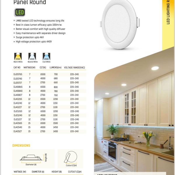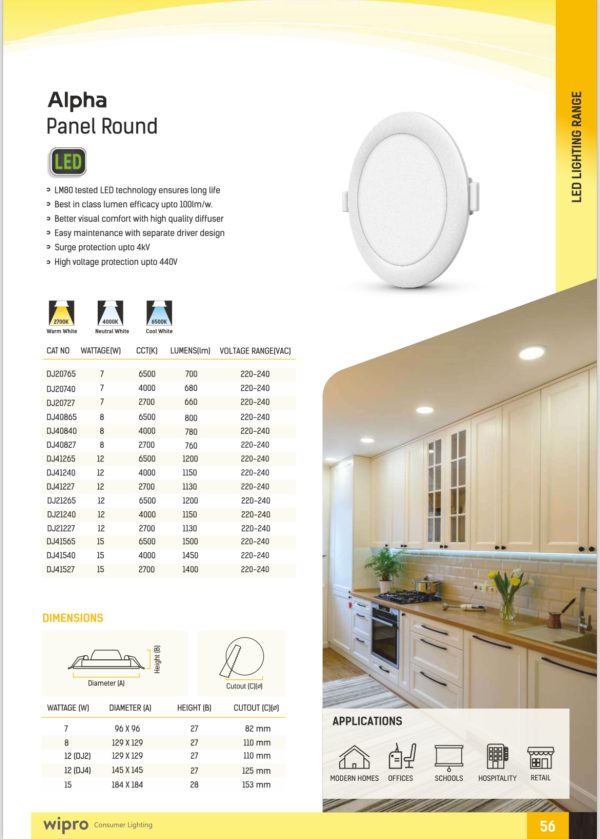 Wipro Garnet Alpha 12 watt round 110 mm cut out LED panel light 2700K WP1427