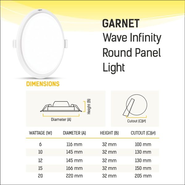 WIPRO GARNET 6 WATT WAVE INFINITY PANEL ROUND 2700K WP1207 WIPRO GARNET 6 WATT WAVE INFINITY PANEL ROUND 2700K WP1207 Original price was: ₹560.Current price is: ₹311. Inc. GST