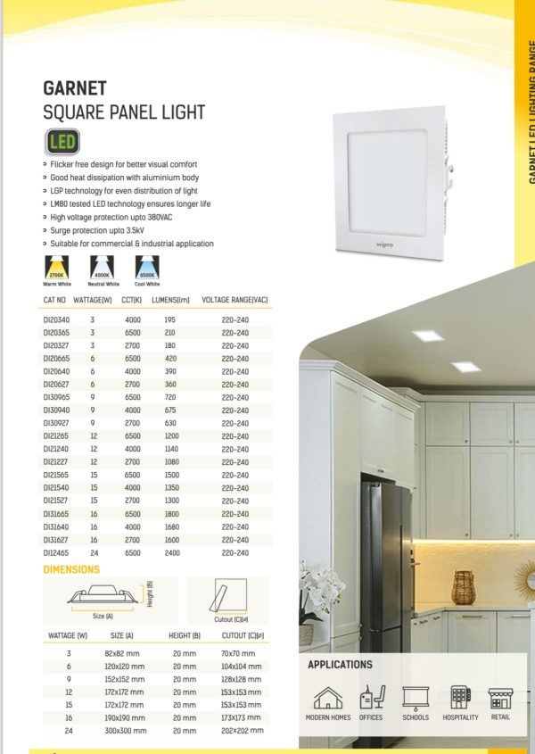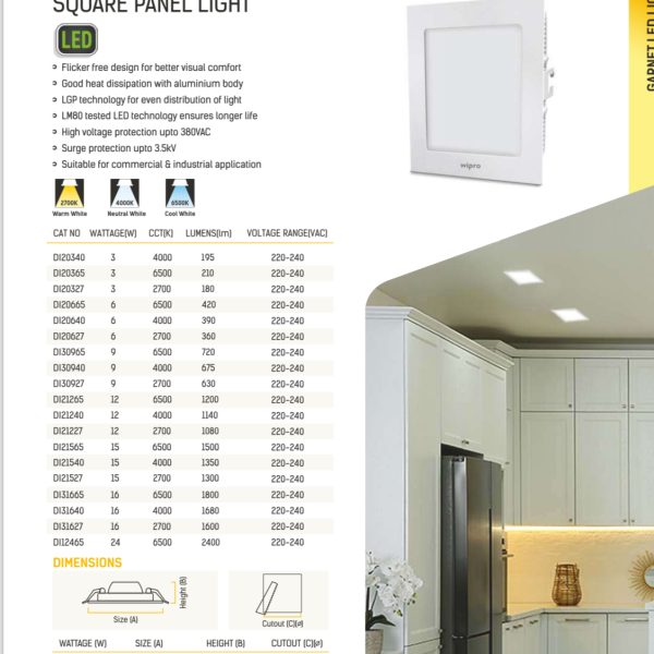 Wipro Garnet Square aluminium panel light 3 watt 6500K WP1435