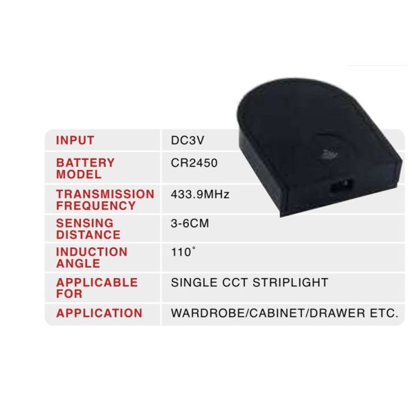 WIRELESS SINGLE DOOR SENSOR FOR FOR SINGLE CCT LED STRIPS FOR CABINET AND WARDROBE LIGHTING.